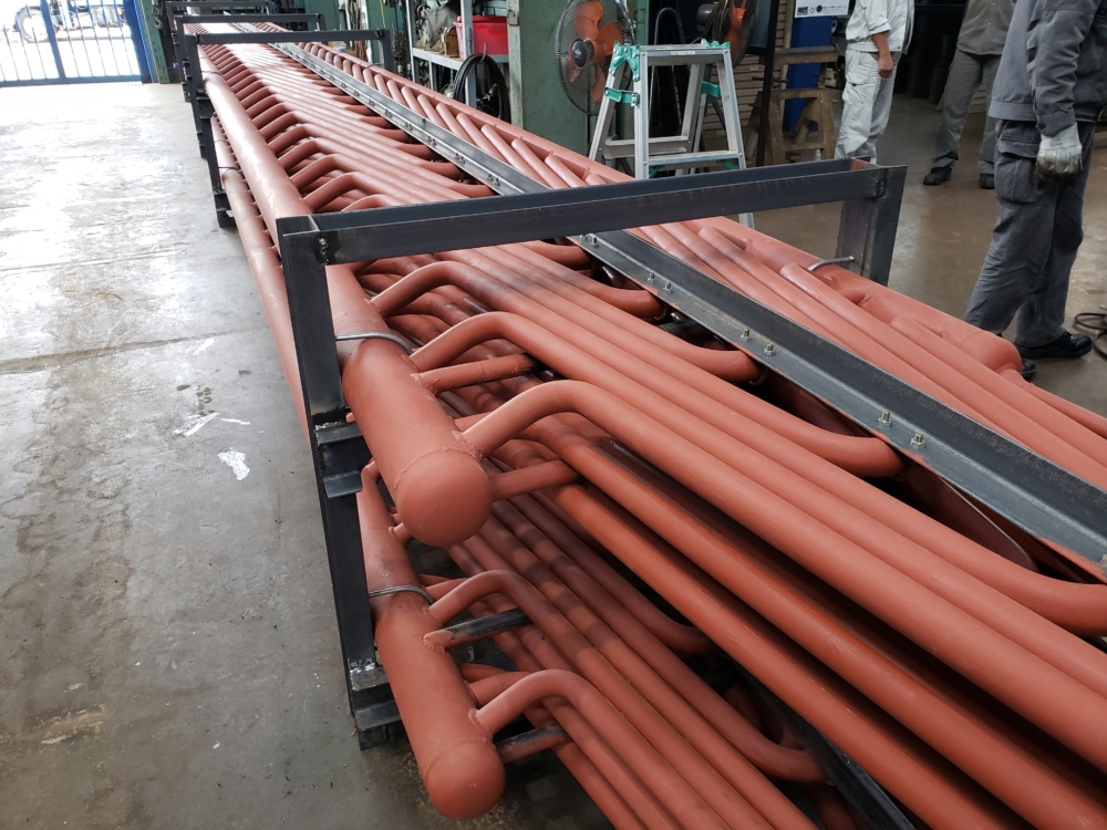 NH3へリングボーンコイル冷却器の更新を行いました | 柴田熔接工作所(福岡・東京)│製氷設備(フレークアイス製氷機・自動搬出貯氷庫)・低温装置・氷蓄熱空調設備・人工造雪機、降雪機の製造
